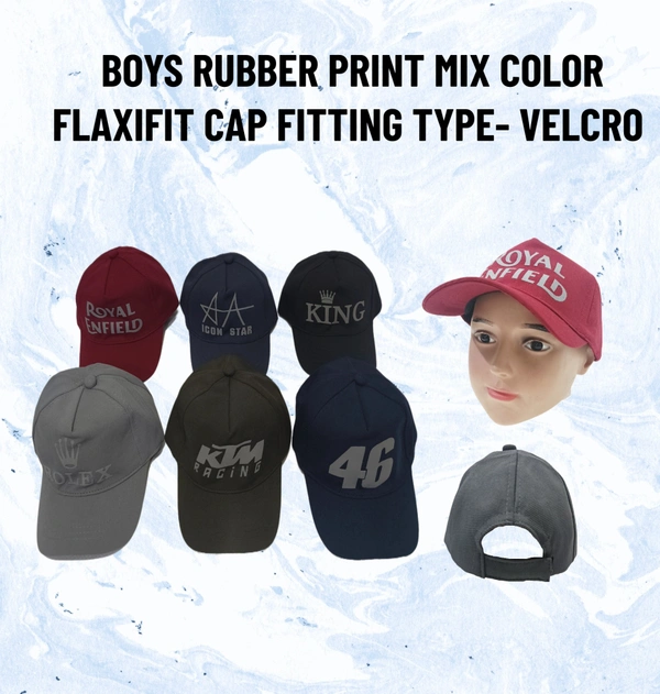 BOYS RUBBER PRINT MIX COLOR FLAXIFIT CAP FITTING TYPE -VELCRO