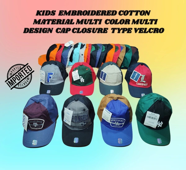 KIDS EMBROIDERED COTTON MATERIAL MULTI COLOR MULTI DESIGN CAP CLOSURE TYPE VELCRO