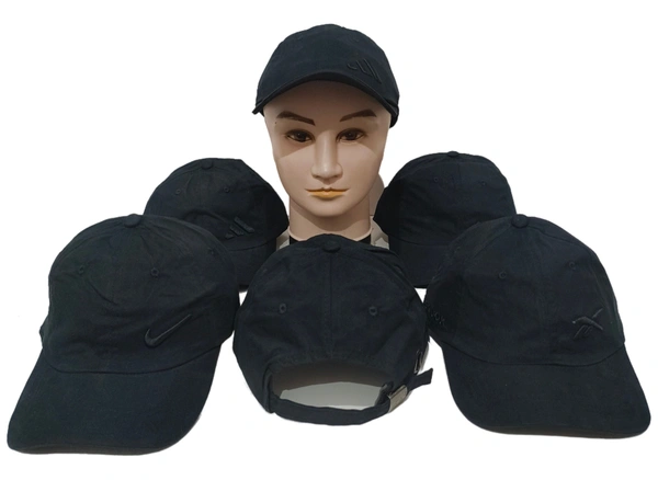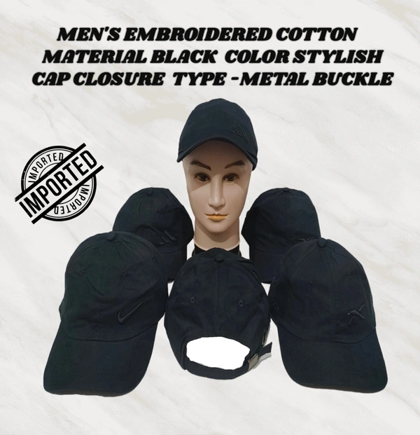 MEN'S EMBROIDERD COTTON MATERIAL BLACK COLOR STYLISH CAP CLOSURE TYPE -METAL BUCKLE