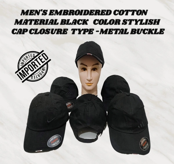 MEN'S EMBROIDERED COTTON MATERIAL BLACK-COLOR STYLISH CAP CLOSURE TYPE -METAL BUCKLE