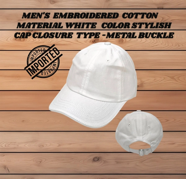 MEN'S EMBROIDERED COTTON MATERIAL WHITE COLOR STYLISH CAP CLOSURE TYPE -METAL BUCKLE