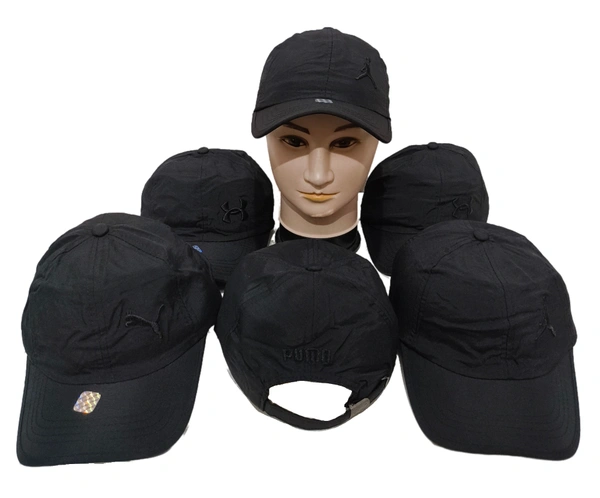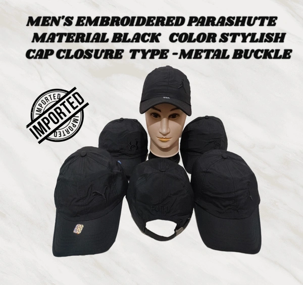 MEN'S EMBROIDERED PARASHUITE MATERIAL BLACK COLOR STYLISH CAP CLOSURE TYPE -METAL BUCKLE