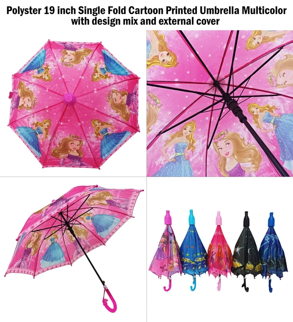 POLYSTER MIX COLOR MULTI CARTOON PRINTED WITH CUP KIDS UMBRELLA SIZE 19 INCHES